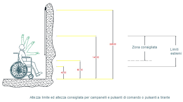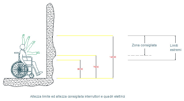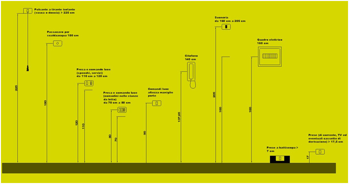 Al fine di agevolare le persone diversamente abili o con difficoltà di movimento, al normale utilizzo delle apparecchiature elettriche di comando, è necessario posizionare tutte le apparecchiature stesse nelle posizioni più adeguate e idonee possibile. I campanelli, i pulsanti di comando e di chiamata, le prese di corrente, il citofono ecc., devono osservare delle distanze dal piano calpestabile compatibili con l’utilizzatore, ma anche nel rispetto delle norme vigenti.